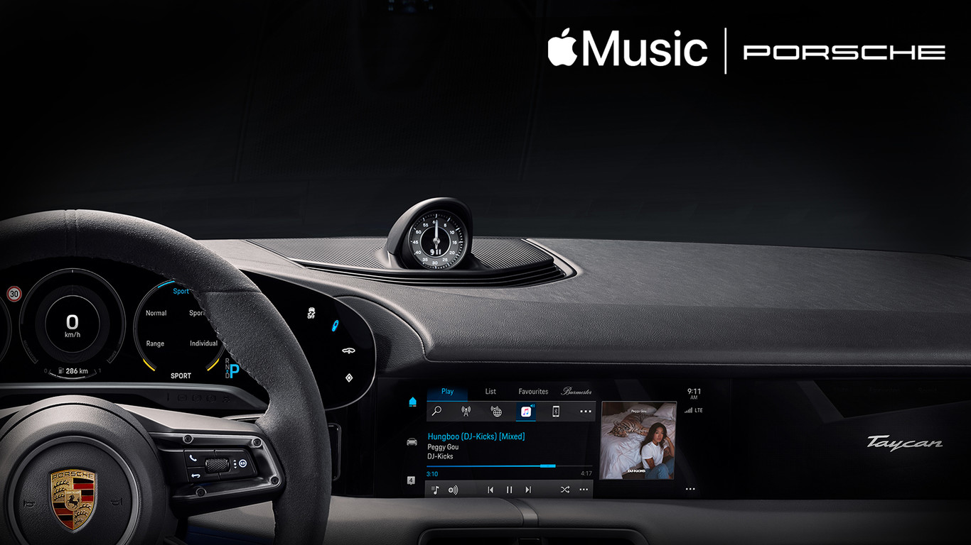 De esta manera, podrán retransmitir en el Taycan hasta 50 millones de canciones sin anuncios, disponer y crear listas de reproducción y disfrutar de servicios de los que dispone Apple Music como el canal de transmisión en vivo Beats 1, donde djs radiofónicos de renombre, como Zane Lowe (BBC Radio 1, MTV Rocks), reproducen canciones 24/7.