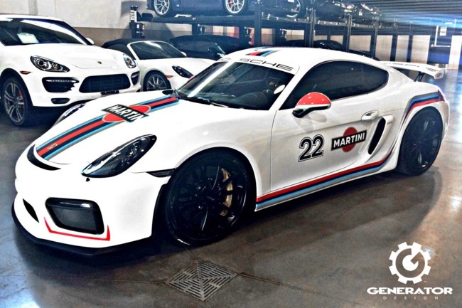 Nadie lo había hecho hasta ahora pero el Porsche Cayman GT4, hoy por hoy uno de los deportivos más apetecibles, ha recibido esta emblemática decoración tan demandada por los clientes gracias a Generator Design. Los especialistas en diseño gráfico afincados en Windsord (Canadá) armados con pistolas de calor y este fantástico diseño en vinilo que podéis ver han dejado impresionante al Cayman GT4.