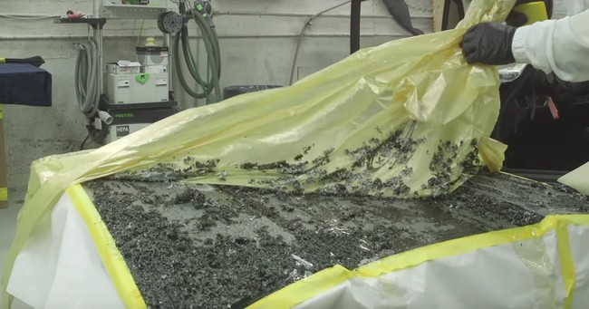 Después, se vierte un producto específico que acaba con la pintura y se cubre con un plástico para acelerar el proceso. Tras 10, 15 minutos, el resultado a corta distancia es como el escenario de Alien o de un crimen. Un crimen contra un Porsche 911.