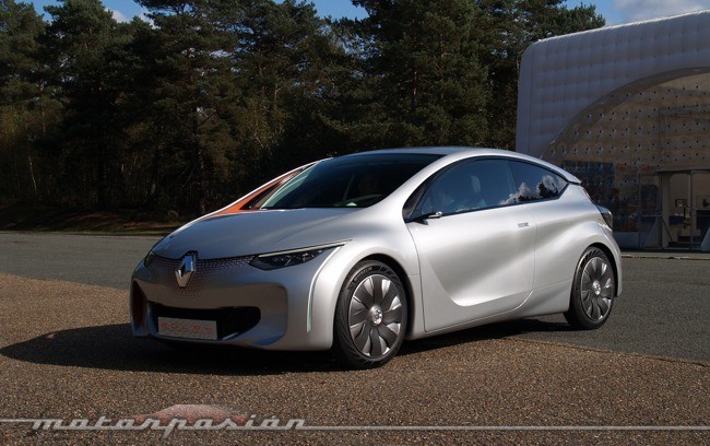 En el Salón del automóvil de París pudimos ver el concept car del Renalt Eolab, el prototipo de utilitario híbrido enchufable de Renault, que homologa un consumo combinado de 1,0 l/100 km de gasolina. Se diferencia de la unidad que se ha construido, principalmente por ser un poco más llamativo, recurriendo a una apertura total de las puertas sin pilar B (el montante central), y a un interior más conceptual y onírico, además de otros pequeños detalles.