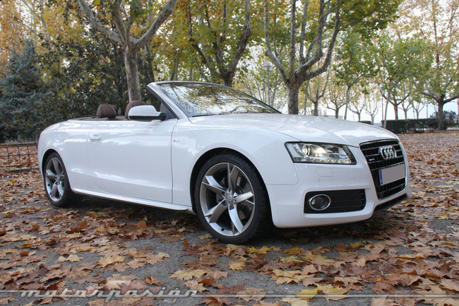 Las versiones más potentes del Audi A5 Cabrio, con permiso del S5 Cabrio, son la 3.0 TDI Quattro de 240 caballos que hemos probado y la 3.2 FSI de 265 caballos. Ambas se diferencian levemente del resto estéticamente, ya que tienen la parrilla delantera pintada en color negro brillante, mientras que los demás la llevan en color gris.