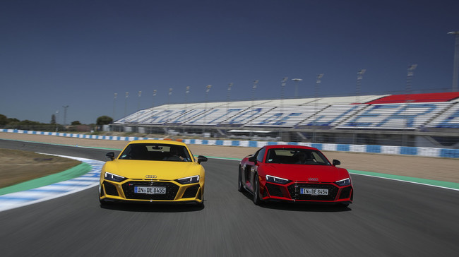 Este propulsor está disponible en dos niveles de potencia: en el R8 normal desarrolla 570 CV (30 CV más que antes) y en el R8 V10 Performance sube hasta los 620 CV, lo que supone 10 caballos extra.