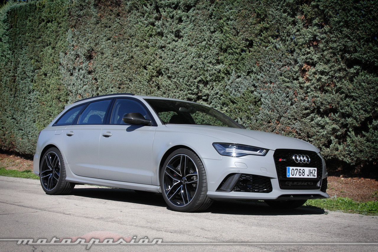 Llego a recoger el coche para esta prueba y no puedo evitar asustarme al verlo. Entre las penumbras del parking, el morro de un RS6 Avant de color gris Daytona mate asoma entre un R8 de nueva generación y un TTS con un llamativo color amarillo.