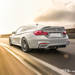 En el CS son de serie los frenos cabronocerámicos, que se identifican por las pinzas monobloque pintadas en color dorado. También el difusor trasero fabricado en plástico reforzado con fibra de carbono, los escapes deportivos con el logotipo M en cada una de las cuatro salidas (no es el mismo de titanio y extremadamente escandaloso del M4 GTS) o las espectaculares luces posteriores OLED que, aparte de dar un espectáculo visual realmente llamativo cuando enciendes el coche, también pesan y ocupan menos que las de un M4 de serie.