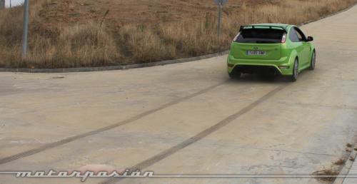 Durante la sesión de fotos, estuve rodando por una zona pre urbanizada de los alrededores de Madrid, que todavía estaba sin asfaltar. A pesar de que el cemento usado como base era muy deslizante y el Focus RS dejaba constantemente las ruedas marcadas en el suelo, incluso en esas condiciones el coche traccionaba bien.