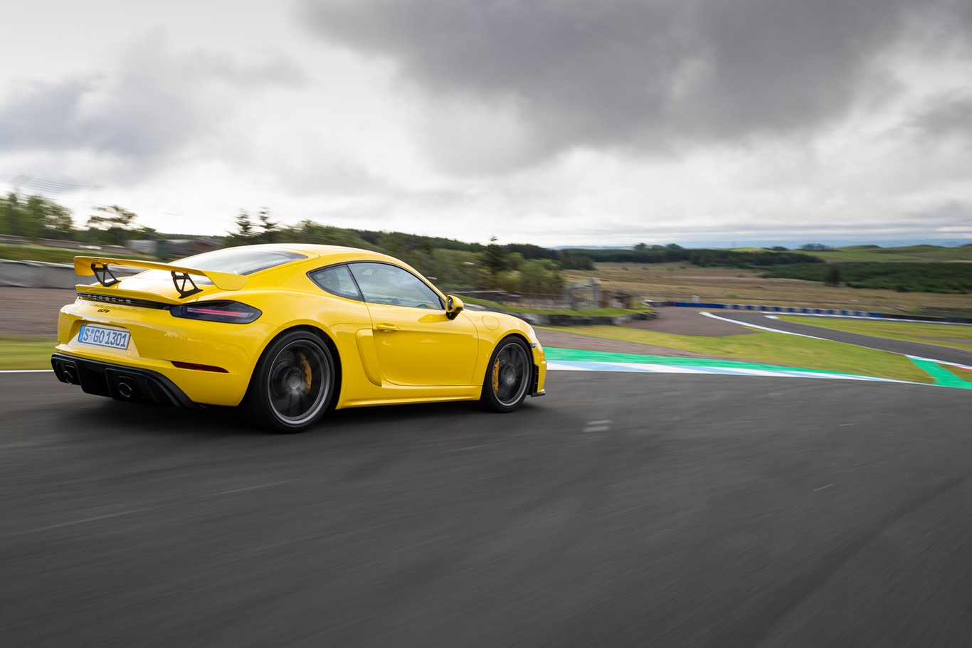Para poner a prueba su nuevo modelo, Porsche nos llevó hasta Escocía. Allí, en el aparentemente sencillo circuito de Knockhill, caracterizado por su corto trazado de apenas dos kilómetros de largo con sus constantes cambios de altura, asfalto estrecho y bacheado y unos pianos capaces de hacer saltar al coche por los aires a nada que los ataques, era donde íbamos a tener esta primera toma de contacto con el 718 Cayman GT4.