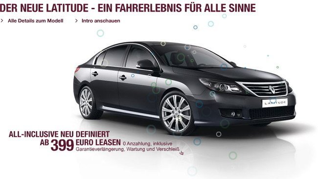 Si nos vamos a la página Web de Renault en Alemania, descubrimos que todos los modelos tienen precio, a excepción del Latitude. Eso sí, se nos ofrece en régimen de leasing con el mantenimiento incluido por una cuota de 399 euros. Es una fórmula de alquiler a largo plazo.
