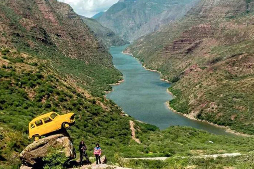 Cualquiera que viaje por la carretera que une Bucaramanga con Zapatoca, en el norte de Colombia, inevitablemente se topará con una imagen curiosa: un Renault 4 amarillo encaramado a una roca, vigilando el paisaje montañoso. No es una escultura ni nada por el estilo: es un coche real que lleva ahí más de 30 años y, con el tiempo, se ha convertido en una parada obligada para quienes visitan “la ciudad del clima de seda”.