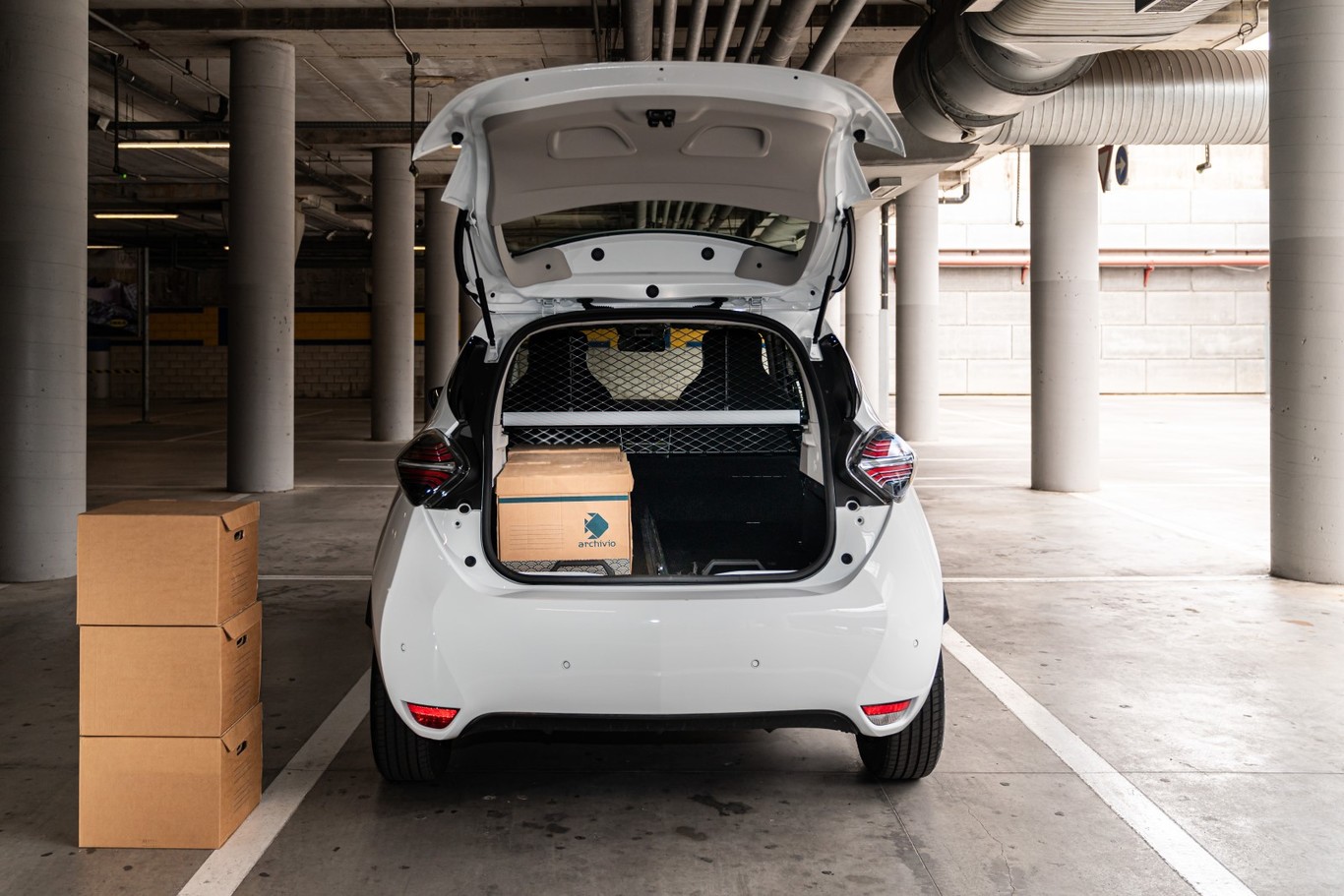 La variante comercial del Renault ZOE incluye en el interior una reja de separación entre las plazas delanteras y la zona de carga, además de una alfombrilla especial y una cubierta de carga.