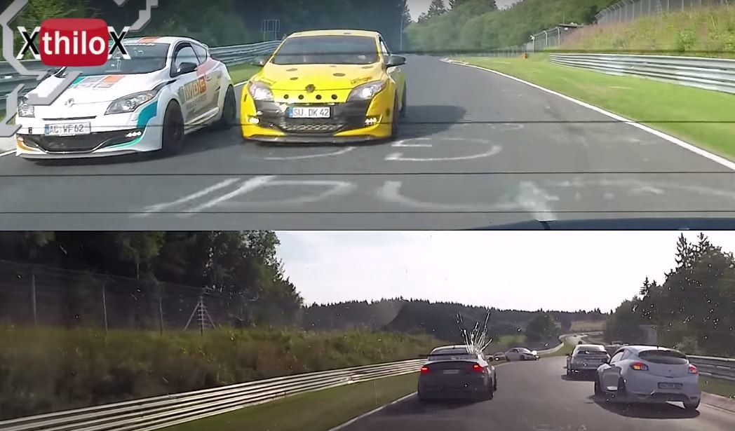 Pero no deja de tener sus riesgos y no debemos olvidar que allí el que rompe paga. Además no estás solo, suele haber bastante tráfico y lo normal es que sean vehículos muy diferentes cada uno rodando al límite. En este vídeo tenemos un interesante susto de un conductor a los mandos de un Renault Mégane RS por culpa de un accidente y también por un pequeño despiste.