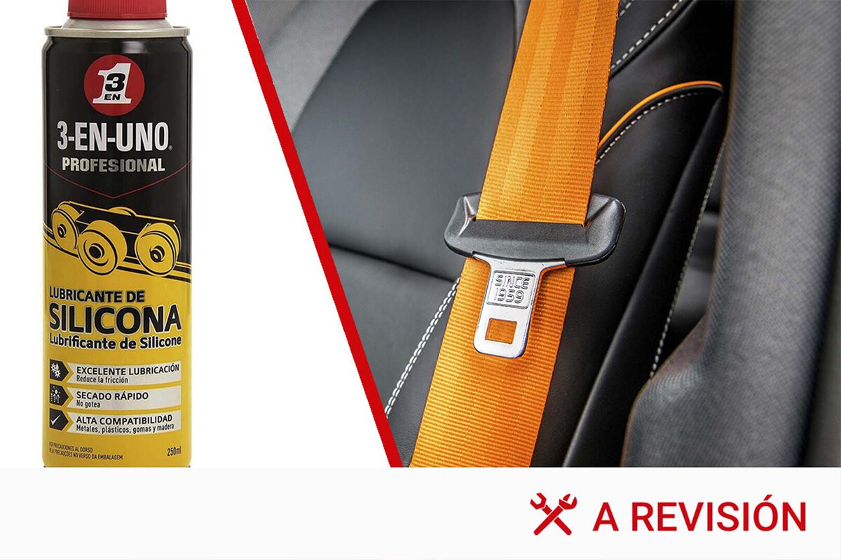 Lo que hace este spray es reducir la fricción, por lo que el mecanismo que repliega el cinturón tiene que hacer menos fuerza para recogerlo. Basta con dar una mano de spray para que vuelva a funcionar perfectamente, como cuando el coche estaba nuevo. Verás que vuelve a deslizar bien y se repliega automáticamente sin ningún problema.