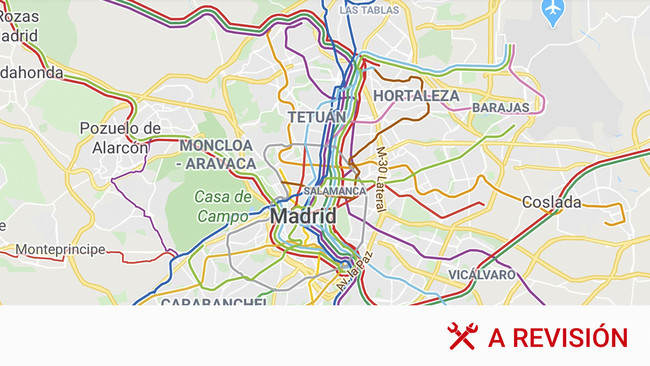 Para una mejor visualización, Maps además muestra las líneas en el mismo color que se utilizan en sus correspondientes redes para una mejor identificación de los recorridos. También se muestran todas las paradas de cada línea, algo que no siempre ocurre si no tenemos activada esta capa en la aplicación.