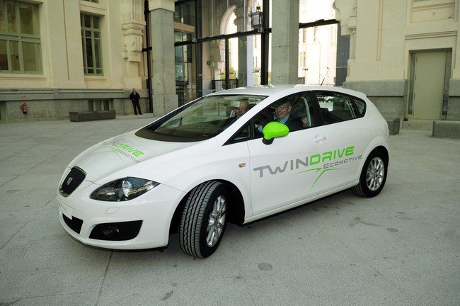 La foto no ha podido venir en mejor momento. SEAT ha cedido al Ayuntamiento de Madrid dos unidades del SEAT León Twin Drive Ecomotive, es decir, un prototipo híbrido enchufable del SEAT León. Es la segunda ciudad que se beneficia de un acuerdo así, primero fue en Barcelona por razones más que lógicas.