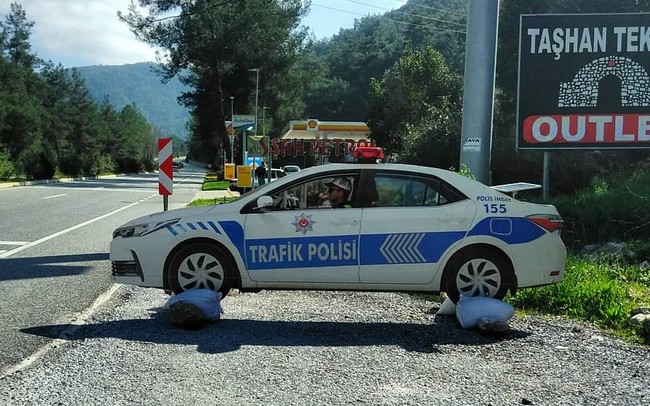 Cardboard Turkish police car patrols highway👮! Does it slow you down? I don't think so but gives you a smile 😁 #fakecop #fakeblues @ Turkey pic.twitter.com/LM5cqd1Feb