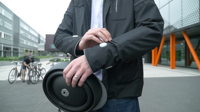 Y es que otra de las funciones de esta avanzada prenda es la de dirigir al ciclista, evitando así que tenga que consultar el mapa en una aplicación de navegación. Es aquí donde entra la app desarrollada por Tome a la que va asociada. El usuario indica el lugar de destino en su smartphone, inicia la navegación y no tendrá que volver a mirar la pantalla: la chaqueta generará vibraciones en las mangas para indicarle cuando debe torcer, guiándole a su destino.