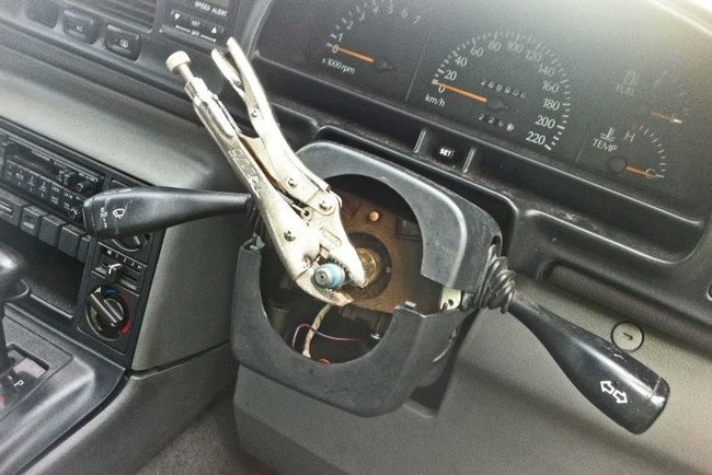 Uno, que es de origen humilde, había visto lo del destornillador encajado en la ventana para evitar que se abriera accidentalmente, también remiendos con los cables y, evidentemente, todo tipo de simbiosis entre pulpos y maleteros. Pero el tema alicates para pillar la columna de la dirección... digamos que me ha dejado con la cara formada por dos puntos, un guión y una s mayúscula.