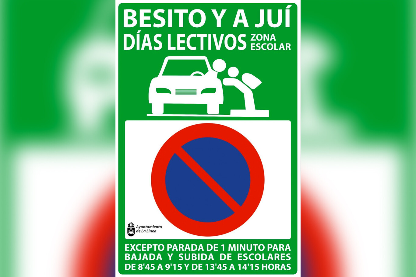 Como detalla La Voz de Cádiz, estas señales ya estaban desde hace tiempo en algunos colegios de este municipio, pero al pictograma de un niño y un padre despidiéndose desde el coche lo acompañaba el texto de 'Kiss and Go' ('Un beso y adiós' en inglés). Se escogió porque La Línea de la Concepción limita con Gibraltar.