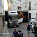 El conductor se ha visto obligado a detener su marcha al llegar a las cuatro esquinas, cuando el camión ha quedado empotrado por las dos bandas entre las paredes de la calle.