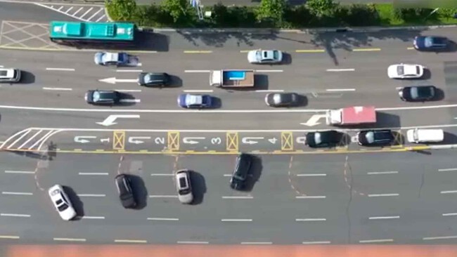 En esta ciudad de China han implementado una curiosa solución para permitir el cambio de sentido: un carril en medio de la autopista que posibilita hacer un giro de 180º. Para ello se elimina la mediana física y lo regulan a base de semáforos. Si vemos como funciona, no parece precisamente seguro.
