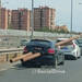 Sí, esta foto es real y retrata a un coche circulando por la autovía de Málaga, en plena hora punta, con dos enormes tubos cruzándolo y sobresaliendo peligrosamente. La imagen, captada por el pasajero de otro automóvil, ha sido publicada por Social Drive en su perfil de Twitter.