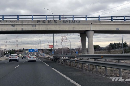 En pleno atasco, cada pocos metros me encontraba con una firma de 'Peke' y de 'Barul' , casi todas, la mayoría de ellas juntas, pero también hay pórticos que solo están firmados por uno o por otro. Como el atasco fue muy largo, contabilicé más de 20 de estas firmas en un tramo de pocos kilómetros.