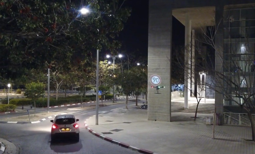 Es aquí donde entra en escena el dron, que proyecta durante 100 milisegundos una señal de 90 km/h en la columna de un edificio; imperceptible para el ojo humano pero que los sensores sí captan (en el vídeo que puedes ver más abajo la imagen parece estar ralentizada).