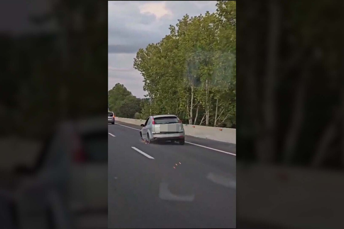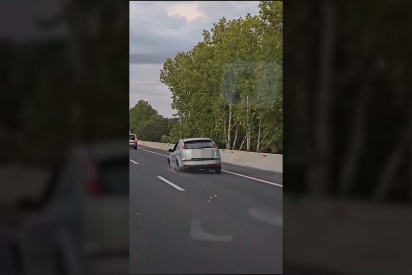 Como 14 km son muchos, dio tiempo a que otros usuarios de la vía grabasen a esta conductora mientras circulaba sin las dos ruedas del lado izquierdo, con su Focus apoyado sobre los discos de los frenos, que ocasionaban las chispas y dañaban el asfalto.