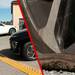 Pinchos o no según como lo atravesemos. Lo que ha colocado esta panadería es lo que se denomina en francés 'herse anti-retour' o 'herse à sens unique'. Traducido al castellano: una barrera de pinchos para un sentido. Este dispositivo integra púas metálicas sobre una base rígida: si se cruza en la dirección permitida y correcta, se pliegan, siendo inofensivos para los neumáticos. Pero si se cruzan en sentido contrario, no, clavándose en la rueda.