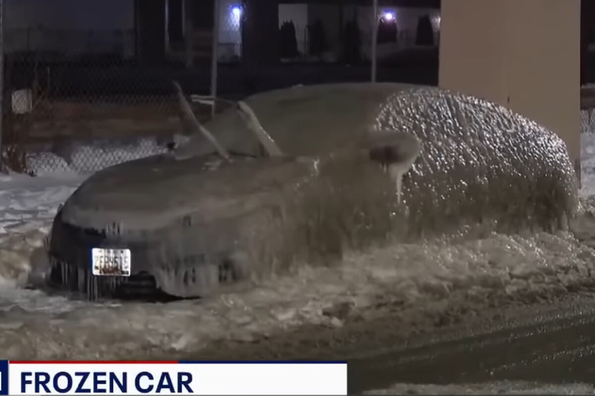 Una tubería de agua reventada y frío extremo: un mal cóctel para un coche