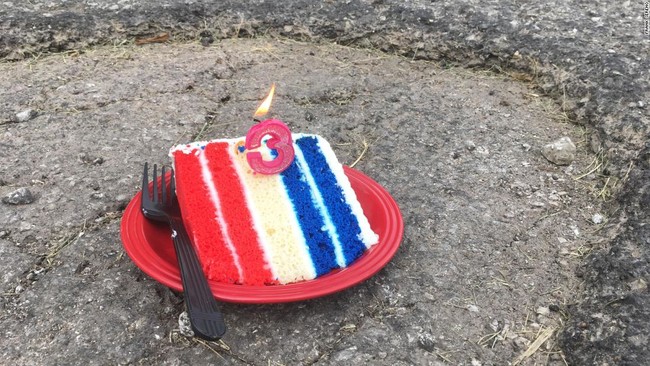 Situaciones desesperadas requieren medidas desesperadas. Es lo que debió de pensar Frank Sereno, un habitante de Kansas City que ha celebrado con un trozo de tarta los tres meses de vida de un bache de su calle que el departamento de obras públicas no se había molestado en arreglar, hasta ahora.