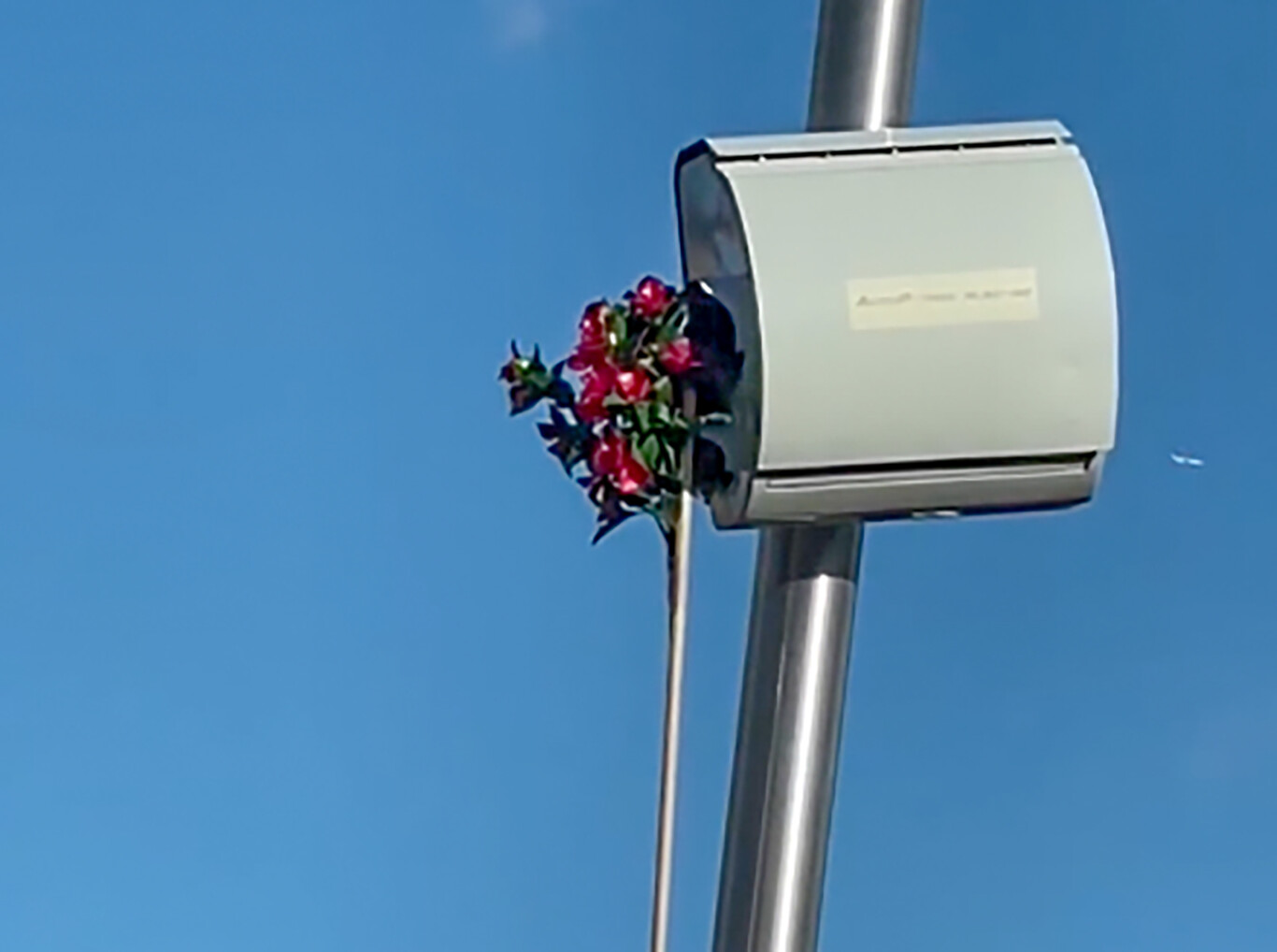 Uno o varios residentes se han hartado y la han tomado con los radares. No los quemen ni rocían de pintura. Se limitan a colgar delante de las cámaras un ramo de flores artificiales, con una nota firmada por el “Escuadrón de Embellecimiento de Staten Island”. En caso de que el radar detecte una infracción, en la correspondiente foto sólo se verá el ramo de flores.