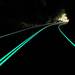 Una carretera que brilla en la oscuridad para marcar el camino donde los faros no llegan