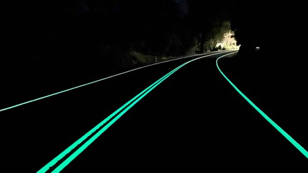 Una carretera que brilla en la oscuridad para marcar el camino donde los faros no llegan