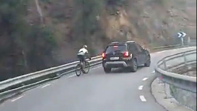 Cualquiera habrá visto vídeos en los que un coche, un autobús o un camión pasan a escasos centímetros de un ciclista. Sin embargo, esta vez ha sido al revés y un ciclista ha intentado adelantar a un coche en la bajada de una carretera de montaña. El resultado de la más que cuestionable maniobra ha sido nefasto para el ciclista. Y también para su cartera.