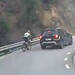 A lo largo de un recorrido de bastantes metros, el ciclista no respeta la distancia de seguridad con el coche de delante e invade en repetidas ocasiones el carril contrario. En la curva más cerrada del tramo, sin visibilidad y con guardarraíles a ambos lados de la vía, el ciclista se decide a adelantar.