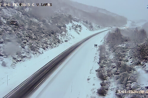 Según informa la Dirección General de Tráfico (DGT), hay 53 carreteras afectadas por la nieve, cuatro de ellas de la red principal. En concreto, la A6 entre León y Lugo está afectada entre Cuevas y el puerto de Pedrafita do Cebreiro, mientras que entre Zamora y Ourense, la A-52 está afectada entre Puebla de Sanabria y Abedes.