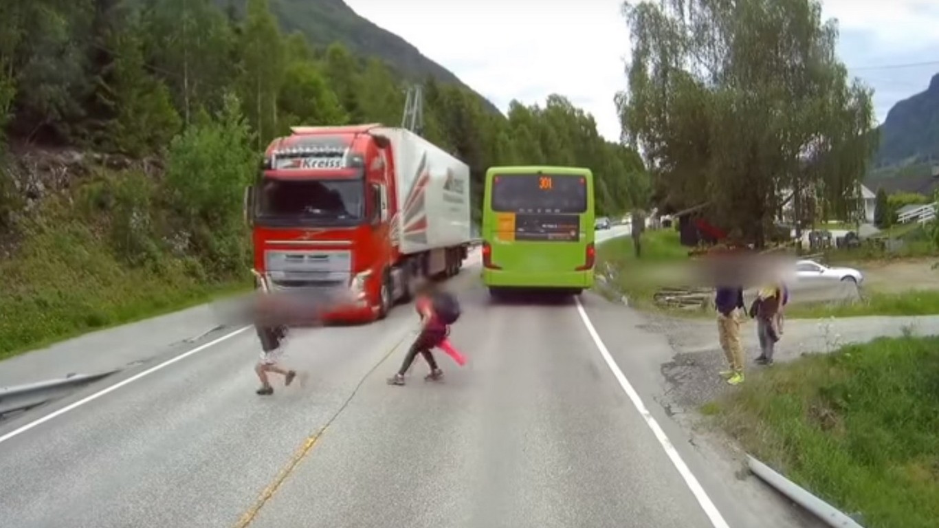 La plataforma 'RoadCams' ha publicado el vídeo en el que se ve cómo unos niños, tras bajar de un autobús, deciden cruzar una carretera desde la parte trasera del vehículo, sin visibilidad del carril contrario. Dos de ellos echan a correr cuando un camión se encuentra de golpe con uno de ellos.