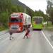 La rápida reacción del camionero, unido al sistema de frenada de emergencia que equipa el pesado vehículo, hacen que milagrosamente el niño solo se lleve un susto (al conductor probablemente tuvieron que ingresarle).