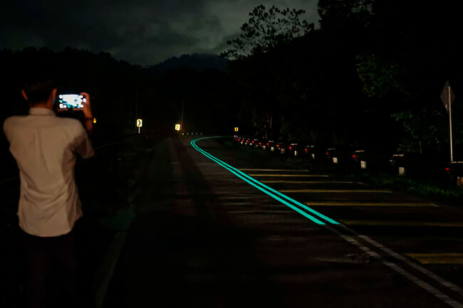 Para mejorar la visibilidad en zonas sin alumbrado público, Malasia probó un sistema piloto: pintar las líneas de la carretera con pintura fotoluminiscente