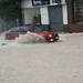 Acelerando con decisión, parecía que el BMW iba a lograr la hazaña, pero cuando casi rozaba la calle de enfrente la fuerza del agua lo arrastró sin piedad: "Claro, písale otra vez. Es que a quién se le ocurre". Así, vemos al modelo bávaro empujado calle abajo, quedando el coche marcha atrás y con el conductor acelerando intentando coger tracción sin éxito.