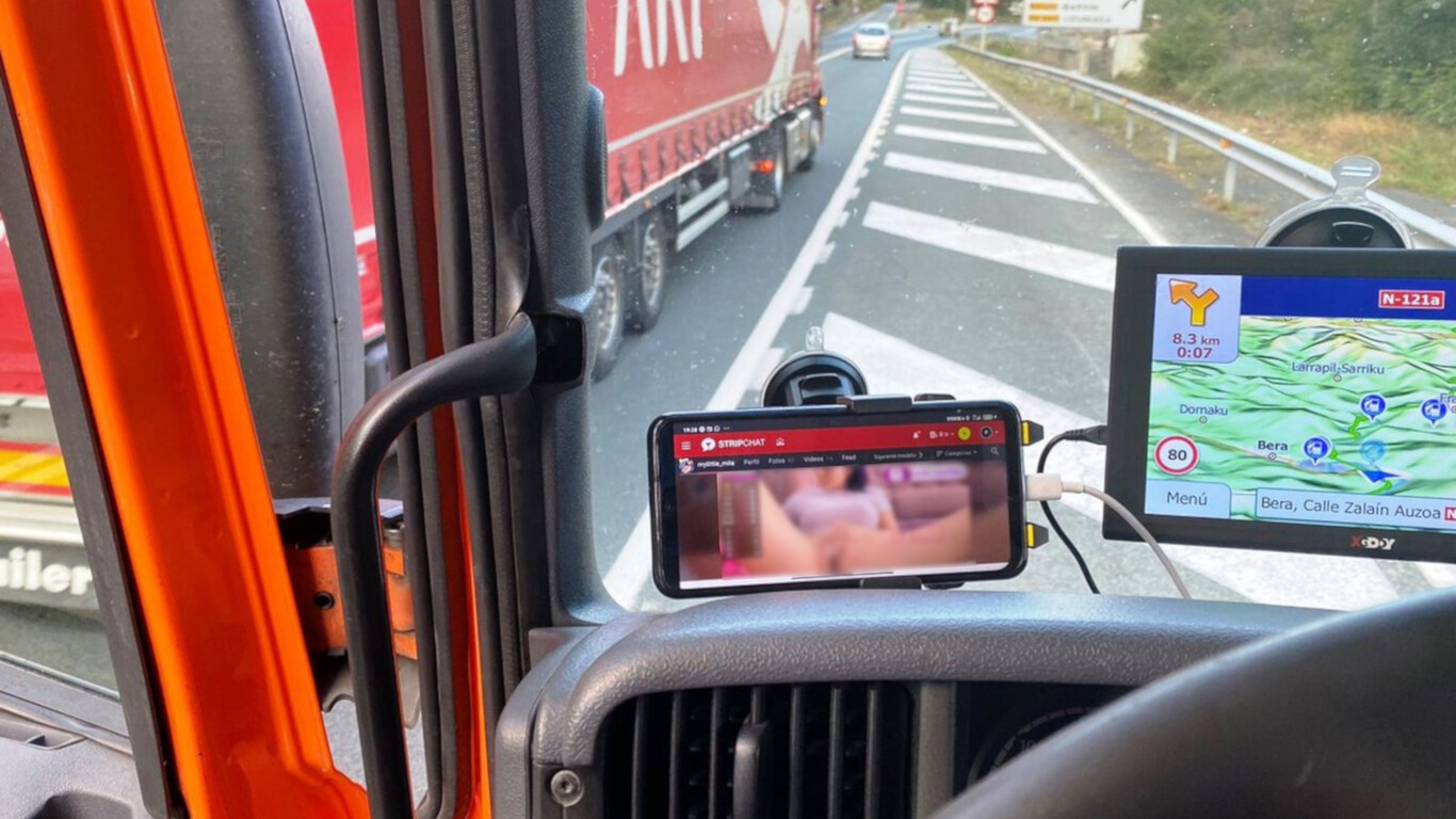 Según detalla la Policía Foral, el camionero en cuestión fue interceptado en la carretera convencional N-121-A, a la altura del municipio de Bera. Los agentes detallan que le descubrieron viendo porno en el teléfono móvil, que llevaba adherido a la luna mediante el habitual soporte y junto al GPS, tal y como puede verse en la fotografía publicada en el tweet.