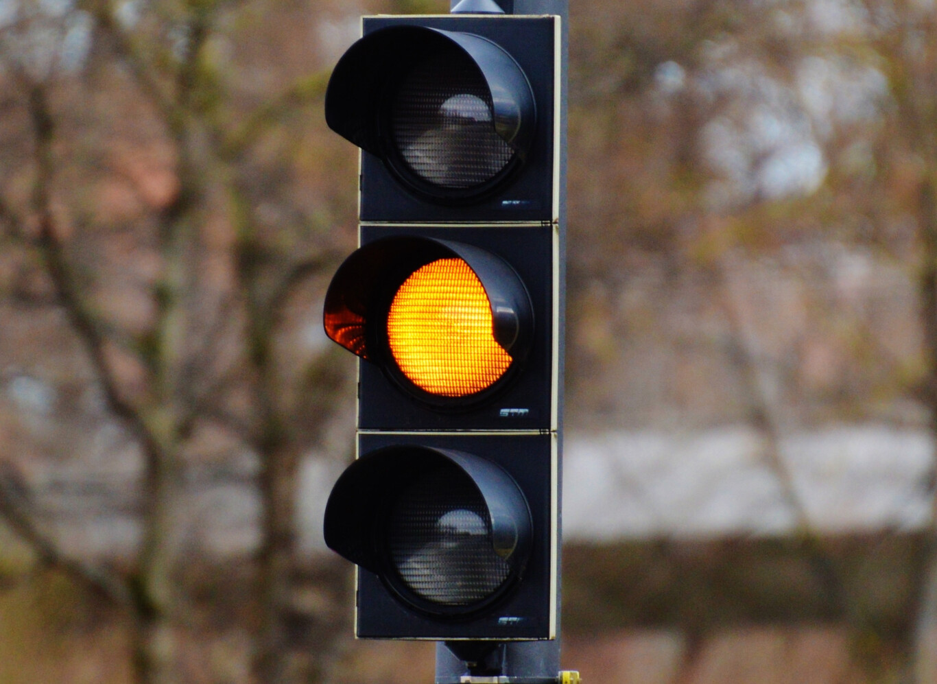 Una luz amarilla no intermitente significa que los vehículos deben detenerse en las mismas condiciones que si se tratara de una luz roja fija. A no ser que, cuando se encienda, el vehículo se encuentre tan cerca del lugar de detención que no pueda detenerse antes del semáforo en condiciones de seguridad suficientes.