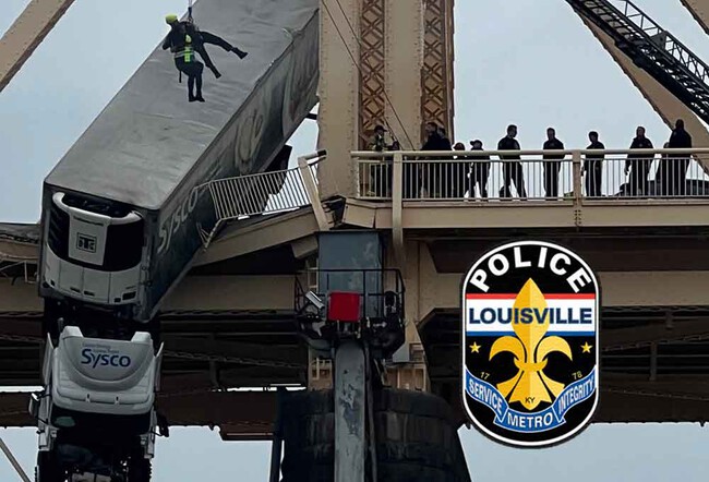Un puente nunca es el escenario ideal para una colisión múltiple y el Clark Memorial Bridge por desgracia lo fue: el conductor de una pick-up provocó un accidente en cadena de cuatro vehículos. Uno de ellos, el camión de Sydney.