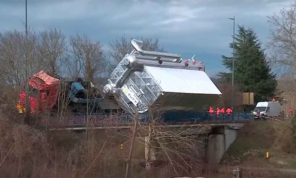 Pero mientras rodaba lentamente, una de las plataformas cedió. El conductor del camión, un joven de 22 años, entró en pánico, temiendo ser arrastrado al vacío. Optó por saltar, aterrizando varios metros más abajo. Resultó herido, por lo que fue ingresado ese mismo día. Le dieron varios puntos de sutura y obtuvo el alta el martes.