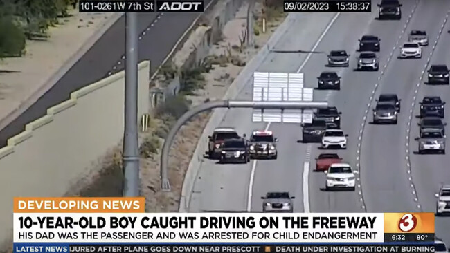 La policía detuvo al padre por múltiples cargos y se lo llevó arrestado a la Oficina del Sheriff del Condado de Maricopa. Estaría acusado, entre otras cosas, de permitir que un menor conduzca y de tener una botella de alcohol abierta dentro de vehículo. El niño de 10 años no se enfrenta a ningún cargo.
