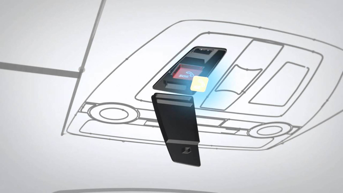 La nueva llamada de emergencia automática eCall, permite realizar avisos desde el propio automóvil. El conductor puede solicitar asistencia apretando el botón de SOS situado en el habitáculo, normalmente junto al retrovisor interior, aunque también ésta se requiere de manera automática en caso de accidente. Si el sistema detecta que se acciona el tensor del cinturón de seguridad, los airbags o el coche ha volcado, de forma autónoma envía un aviso a los centros de emergencia.