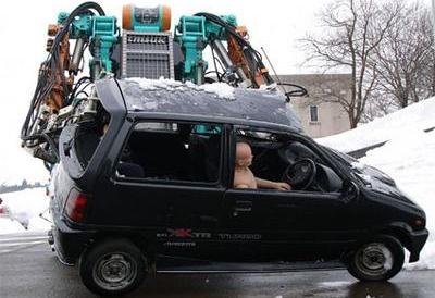 Se llama Enryu y es de Japón. Hasta ahora era especialista en intervenciones en caso de terremoto, pero en el crudo invierno se le ha asignado otra labor: ayudar a despejar las carreteras japonesas de coches atascados en la nieve. Como véis las puebas incluyen maniquíes. Extraño, porque no creo que nadie se quedase dentro mientras Enryu actúa.