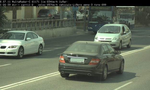 Esta imagen corresponde a un conductor que se ha librado, porque está en fase de pruebas, iba a 57 km/h. Pero próximamente, el que pase de 53 km/h en ese lugar se expone a una multa de 100 euros, vaya en el carril que vaya. Este radar es más caro que los que se usan normalmente, pero también es más eficiente poniendo multas con mucho tráfico.