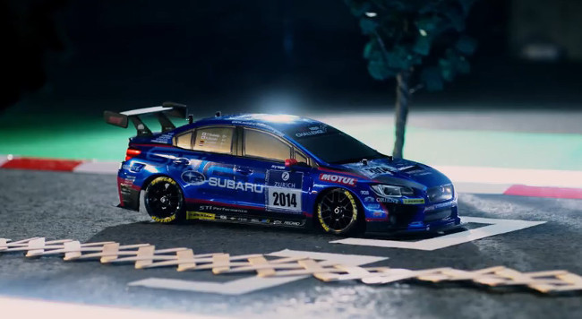 En vídeos de coches parece que está todo visto. Los creativos de las agencias se dejan los sesos buscando nuevas ideas que consigan atraer la atención del consumidor de YouTube, y parece que en este caso lo han conseguido con una fórmula bastante sencilla: un Subaru WRX STi de radiocontrol y un circuito formado por palitos como los que utilizan los médicos para inspeccionar la garganta de sus pacientes.