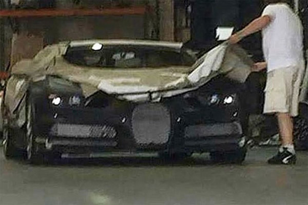 La fotografía tiene una calidad bastante baja, parece que alguien ha abusado del zoom de la cámara de su móvil. De cualquier forma, podemos observar los principales rasgos estéticos del nuevo Bugatti Chiron, que no será muy diferente al Veyron. El 92% de sus componentes serán nuevos, pero el lenguaje visual de la marca conserva el trazo original de los faros, la forma de la calandra y las enormes tomas de aire para enfriar al monstruoso bloque que pueda llevar bajo el capó.